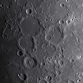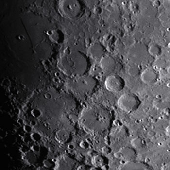 group. The wall is over 150m tall. L51 Davy crater chain. Result of comet-fragment impacts. To the left of Ptolemaeus is a small bright crater Davy G. The crater chain extends from here to the west into the irregular shaped crater Davy. Apart from Davy G, the rest of the crater chain is not visible in this image. |