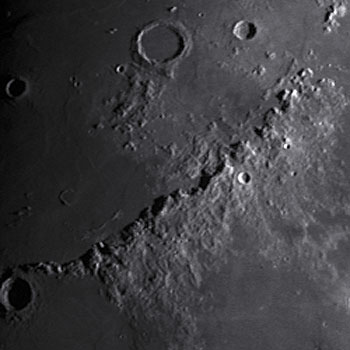 image. Best example of a lunar fault. It extends for 65 miles in a nearly