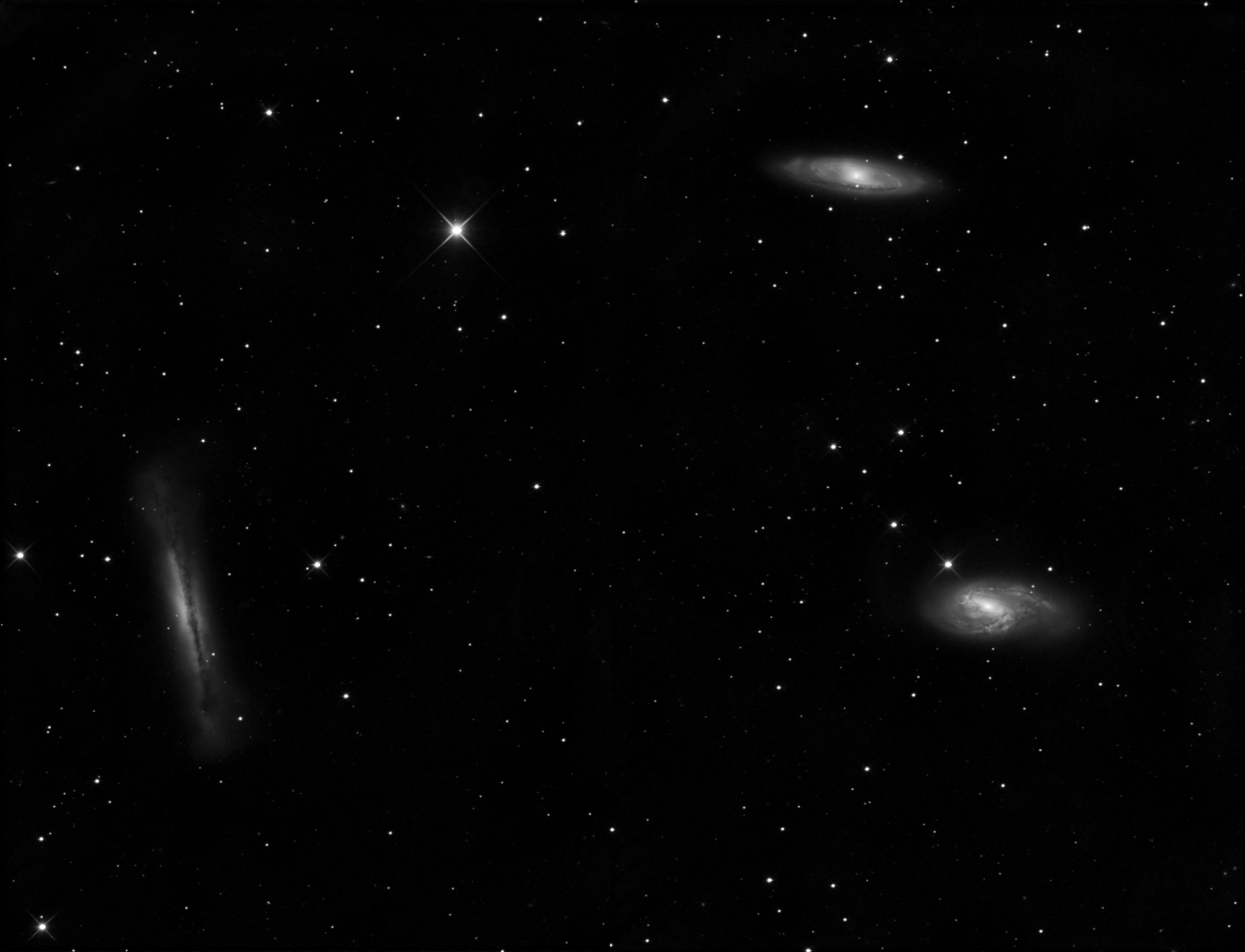 The Leo Triplet consists of M65 (top right) M66 (bottom right) and NGC 3628